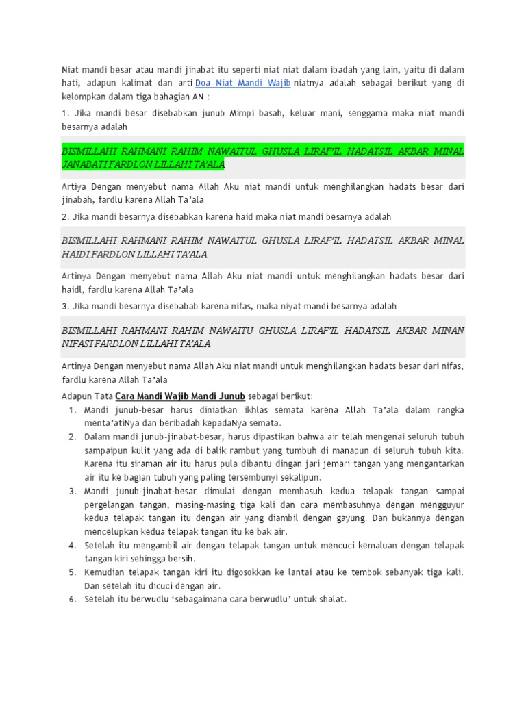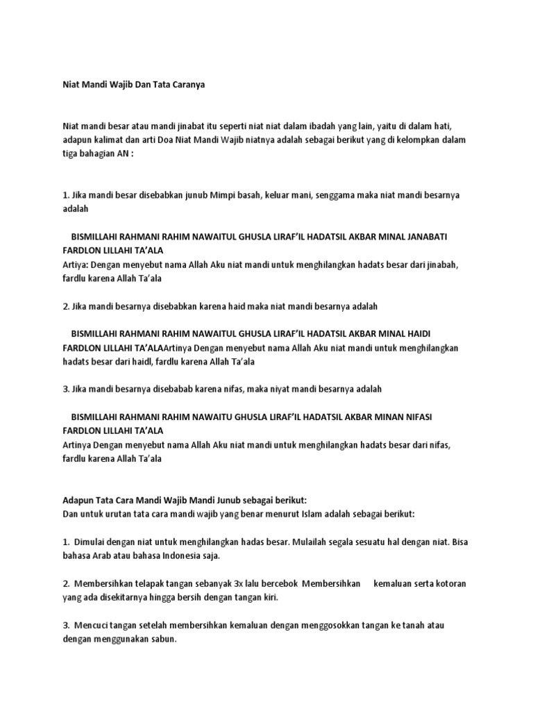 Doa Niat Mandi Nifas Dalam Bahasa Arab Docx