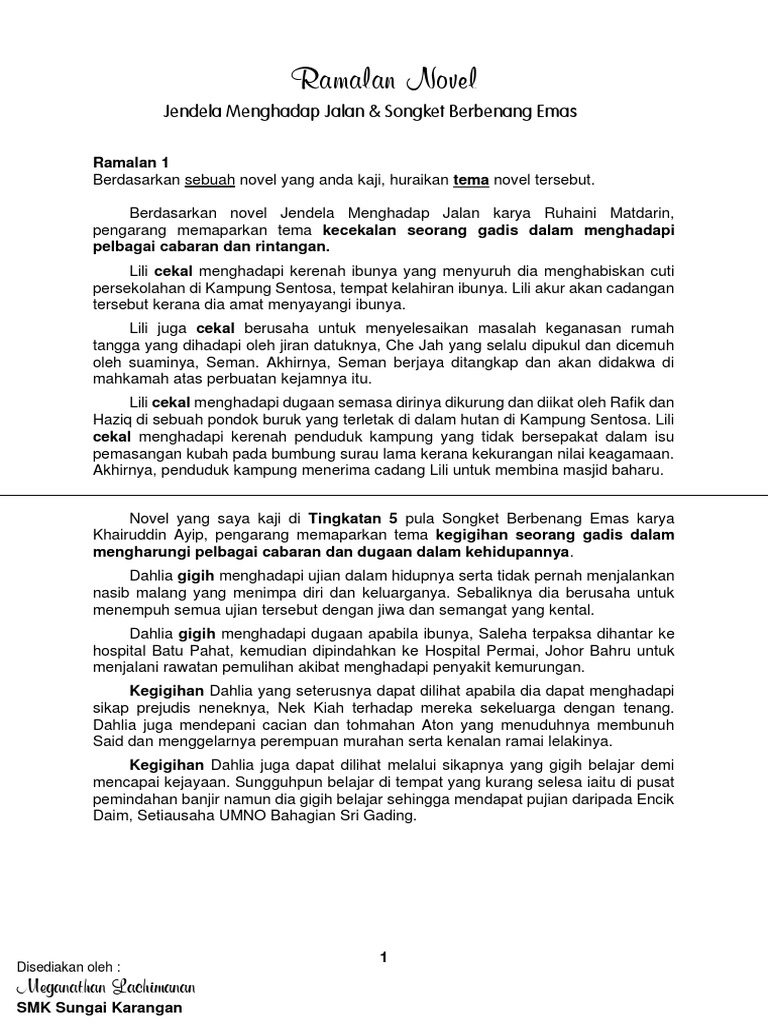 Bm Novel Docx Sinopsis Novel Songket Berbenang Emas Mengisahkan Kegigihan Dahlia Yang Memegang Peranan Sebagai Pelajar Dan Anak Sulung Dalam Keluarga Course Hero