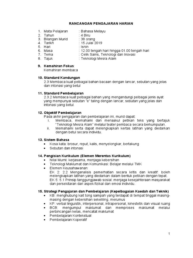 Senarai Nilai Murni Dalam Rancangan Pengajaran Harian