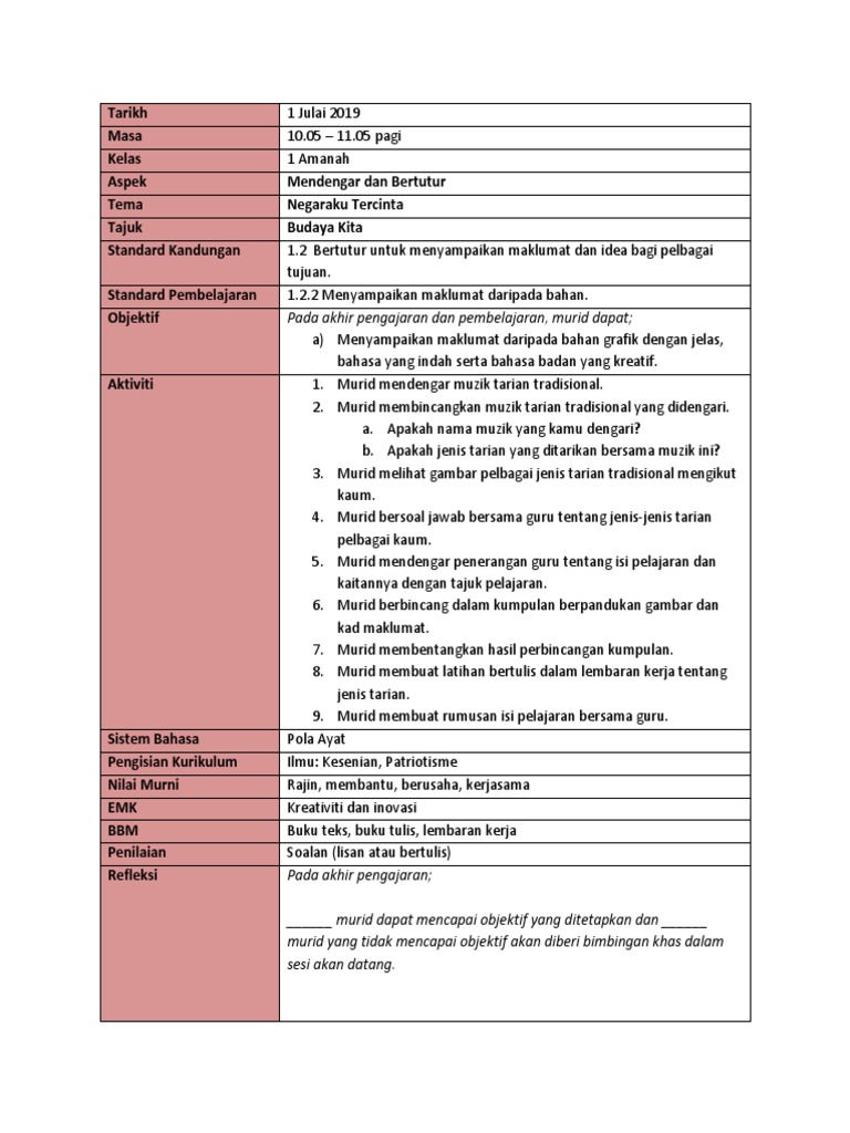 Rph Bm Sivik Kasih Sayang Tahun 1 Docx