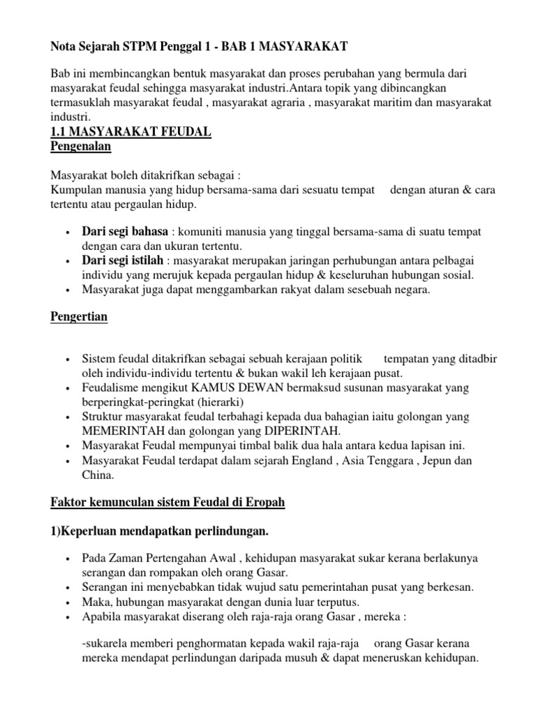 Nota Bm Stpm Sejarah Sem 1 Pdf Document