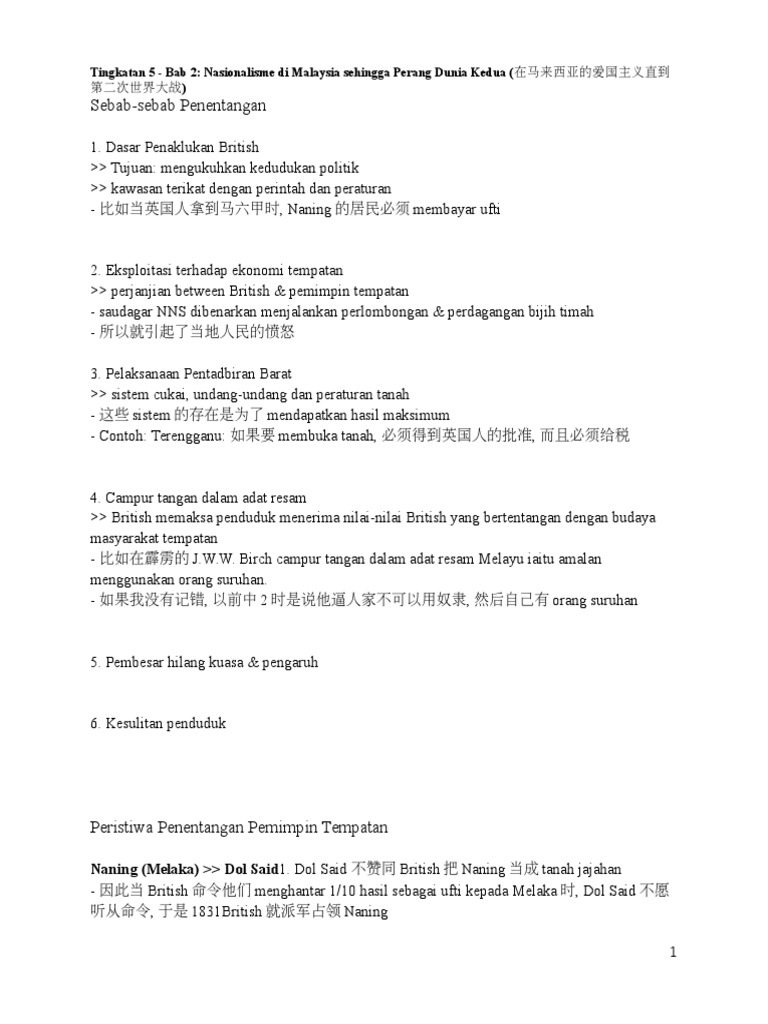 Nota Sejarah Tingkatan 5 Bab 2 Nasionalisme Di Malaysia Nota Sejarah