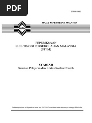 Peperiksaan Sijil Tinggi Persekolahan Modular Sukata1 Stpm S930 Peperiksaan Sijil Tinggi Persekolahan Malaysia Stpm Syariah Sukatan Pelajaran Dan Kertas Soalan Contoh Sukatan Pelajaran Pdf Document
