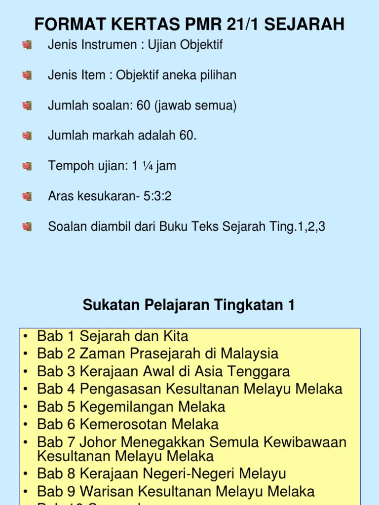 Objektif Kajian Sejarah Tingkatan 2 Kesultanan Melayu Melaka