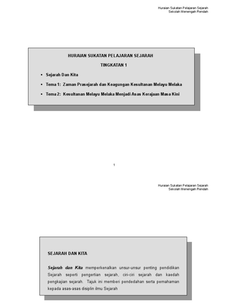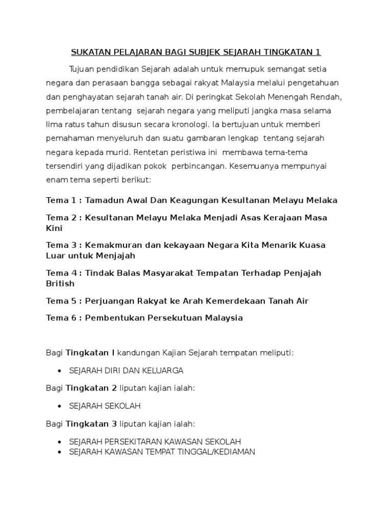 Sukatan Pelajaran Bagi Subjek Sejarah Tingkatan 1