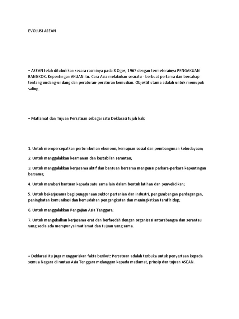 Asean Persatuan Negaranegara Asia Tenggara Asean Latar Belakang Ditubuhkan Pada 8 Ogos 1967 Dibawah Deklarasi Bangkok Dianggotai Oleh Negara Asia Course Hero