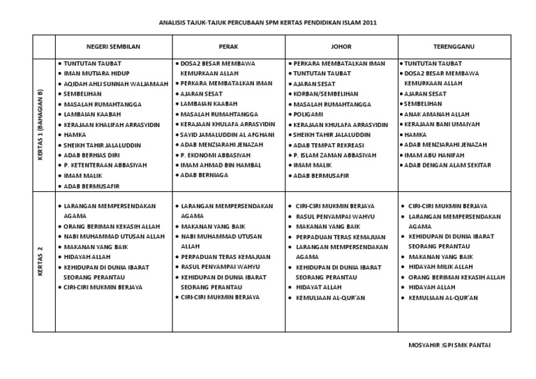 Analisis Tajuk Percubaan Spm Pendidikan Islam 2011