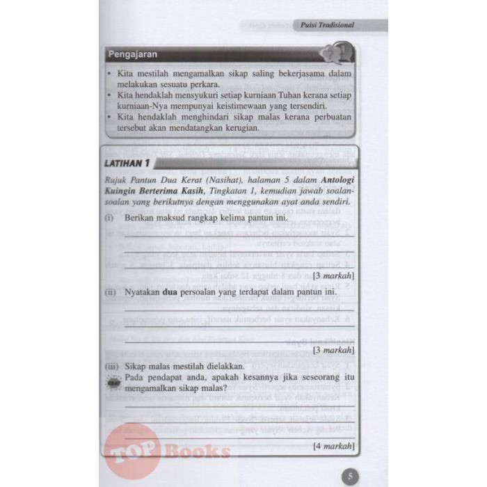 Sap Antologi Kuingin Berterima Kasih Tingkatan 1 Topbooks Plt