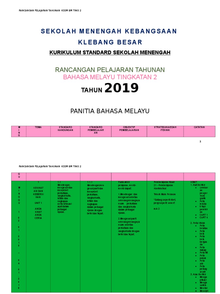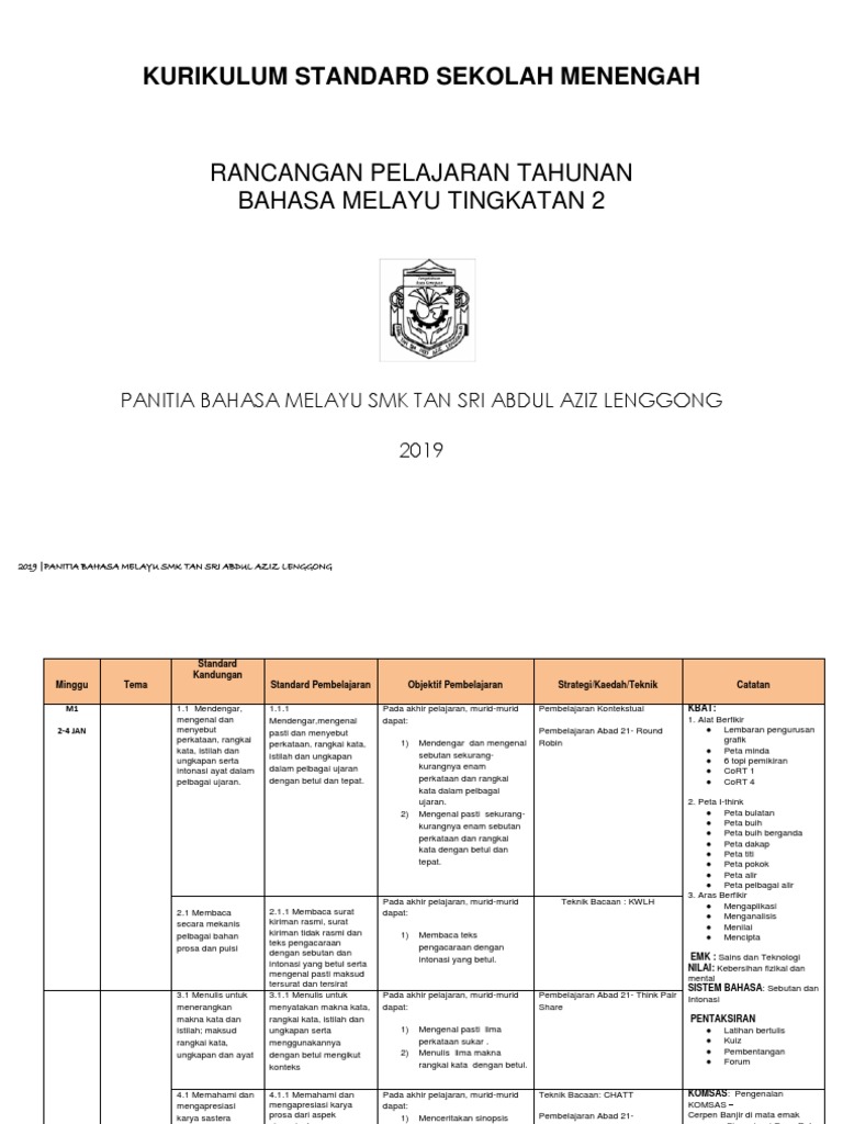 Pdf Kurikulum Standart Sekolah Menengah Kssm Rancangan Pelajaran Tahunan Bahasa Melayu Tingkatan 2 Tahun 2018 Panitia Bahasa Melayu Smk Laki Laki Methodist Nur Wardah Academia Edu
