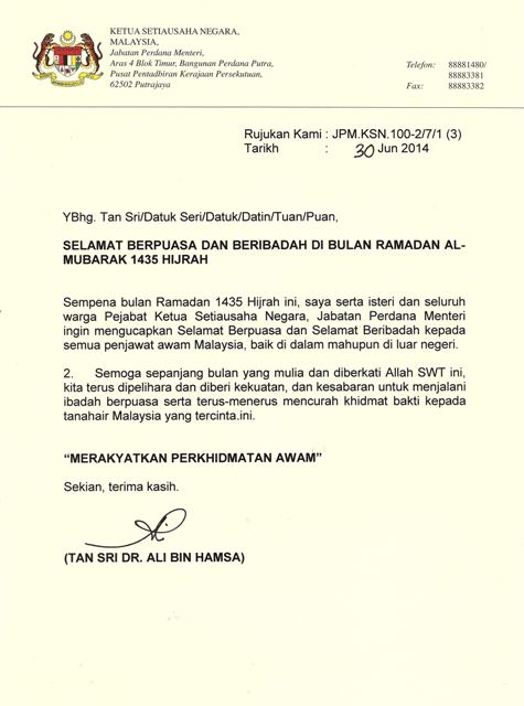 Tan Sri Mohd Zuki Ali Ketua Setiausaha Negara Posts Facebook