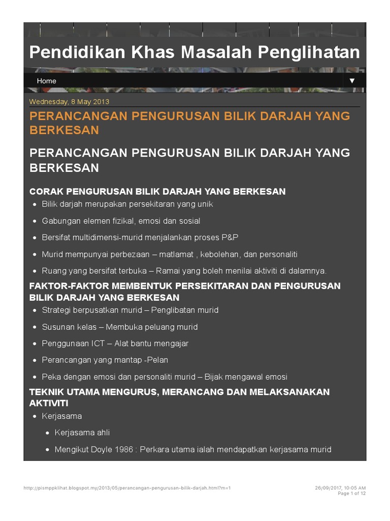 Pendidikan Khas Masalah Penglihatan Perancangan Pengurusan Bilik Darjah Yang Be