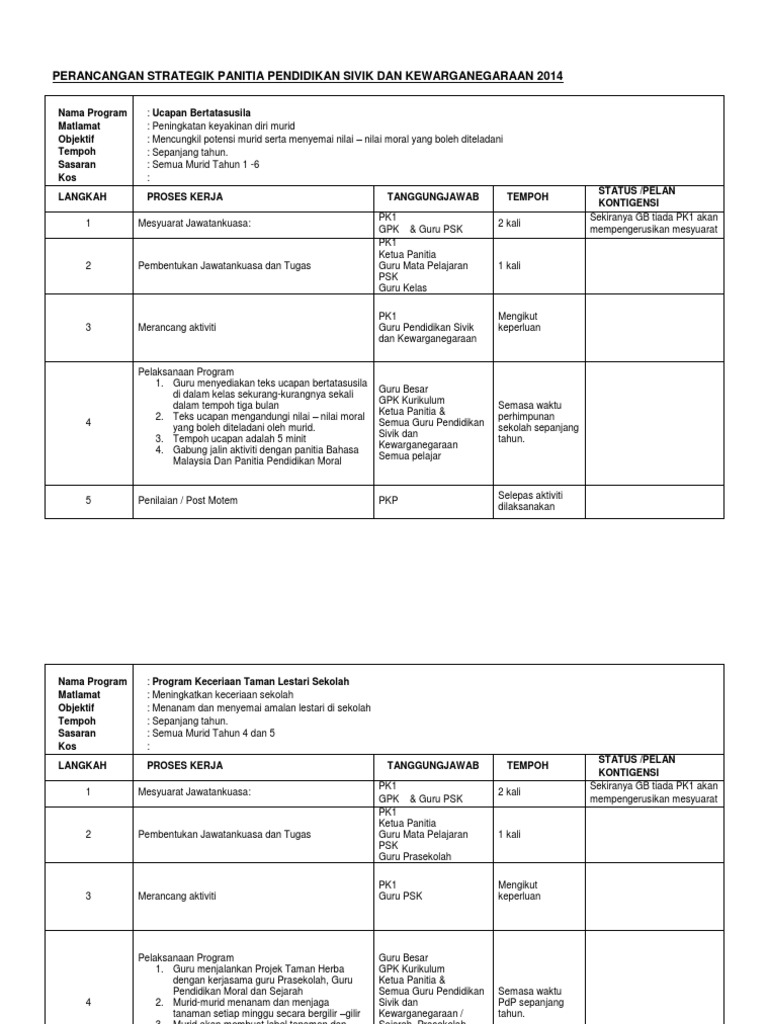 Doc Pelan Strategik Panitia Pendidikan Sivik Dan Kewarganegaraan 2014 Aini Syazwani Abdul Rahman Academia Edu