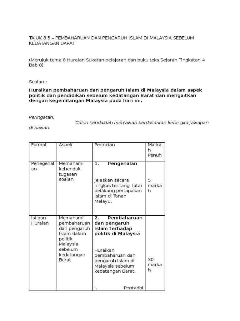 Pembaharuan Dan Pengaruh Islam Di Malaysia Sebelum Kedatangan Barat Kertas 3